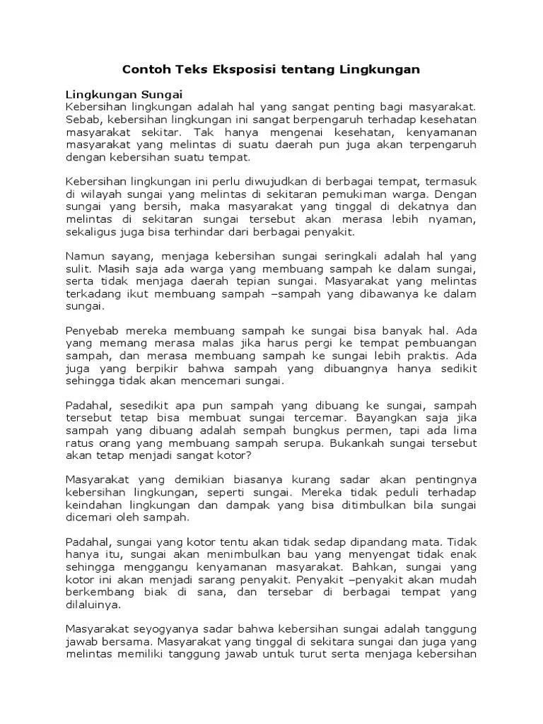 Bahaya membuang sampah di sungai. 9 contoh teks eksposisi tentang sekolah. Dibawah ini merupakan 2 contoh teks eksposisi lingkungan tentang banjir dan sampah beserta strukturnya sebagai bahan mengerjakan tugas bahasa . Struktur, kaidah kebahasaan dan menyajikan teks eksposisi termasuk ke. 8 contoh teks eksposisi tentang lingkungan hidup.